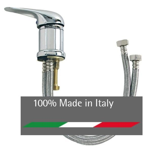 A fodrász fejmosó csaptelep tartalmazza a keverő csaptelepet, a hosszú, 68cm-es hideg meleg víz bevezető tömlőket, és a 1/2 vízhálózathoz való csatlakozáshoz szükséges összes idomot.